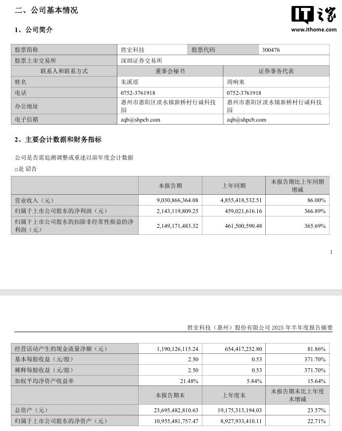 IT之家 8 月 26 日消息配资论坛之家,全球印制电路板制造百强企业“胜宏科技”今日晚披露半年报:2025 年上半年营业收入 90.31 亿元,同比增长 86.0%。